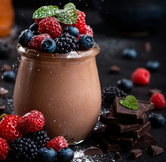 Coconut Milk, Chocolate Protein Powder, Mixed Berries, Spinach, Banana