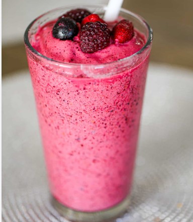 Apple Juice, Coconut milk, Beets, Blueberries, Chai Seeds, Cinnamon